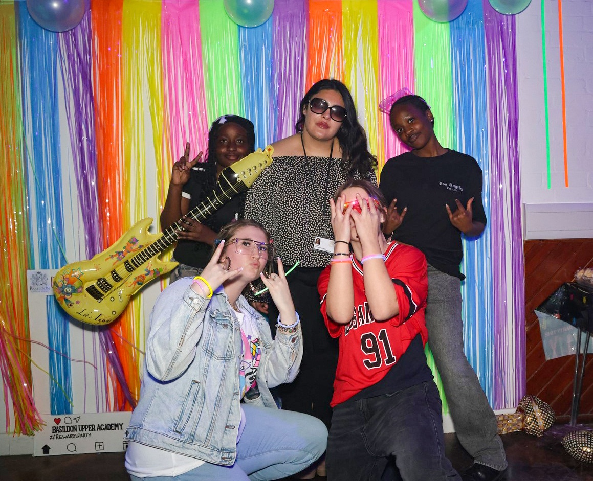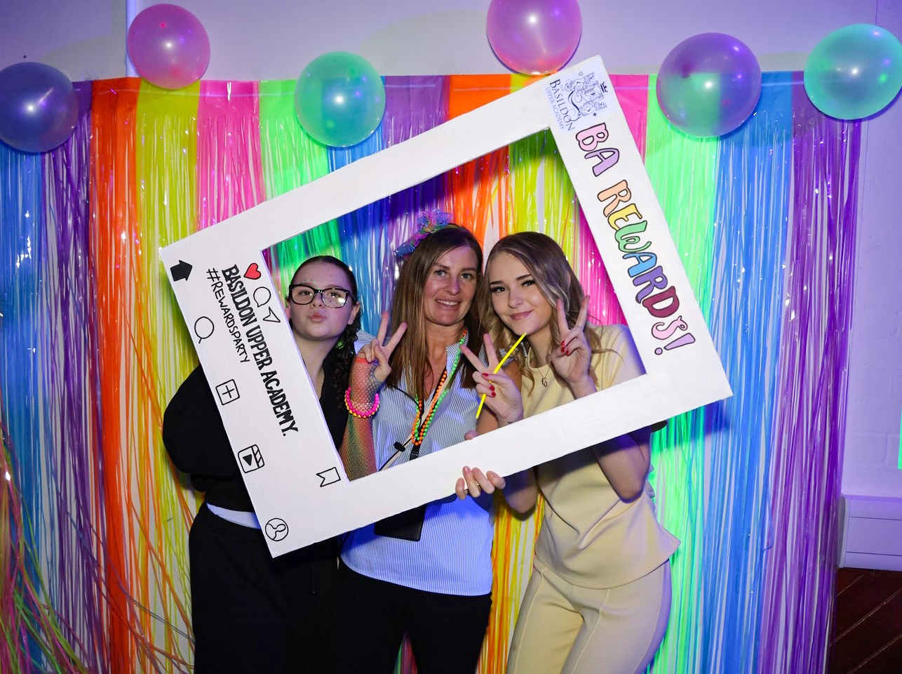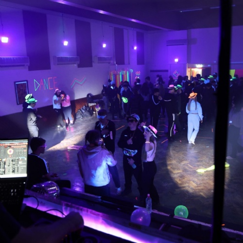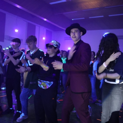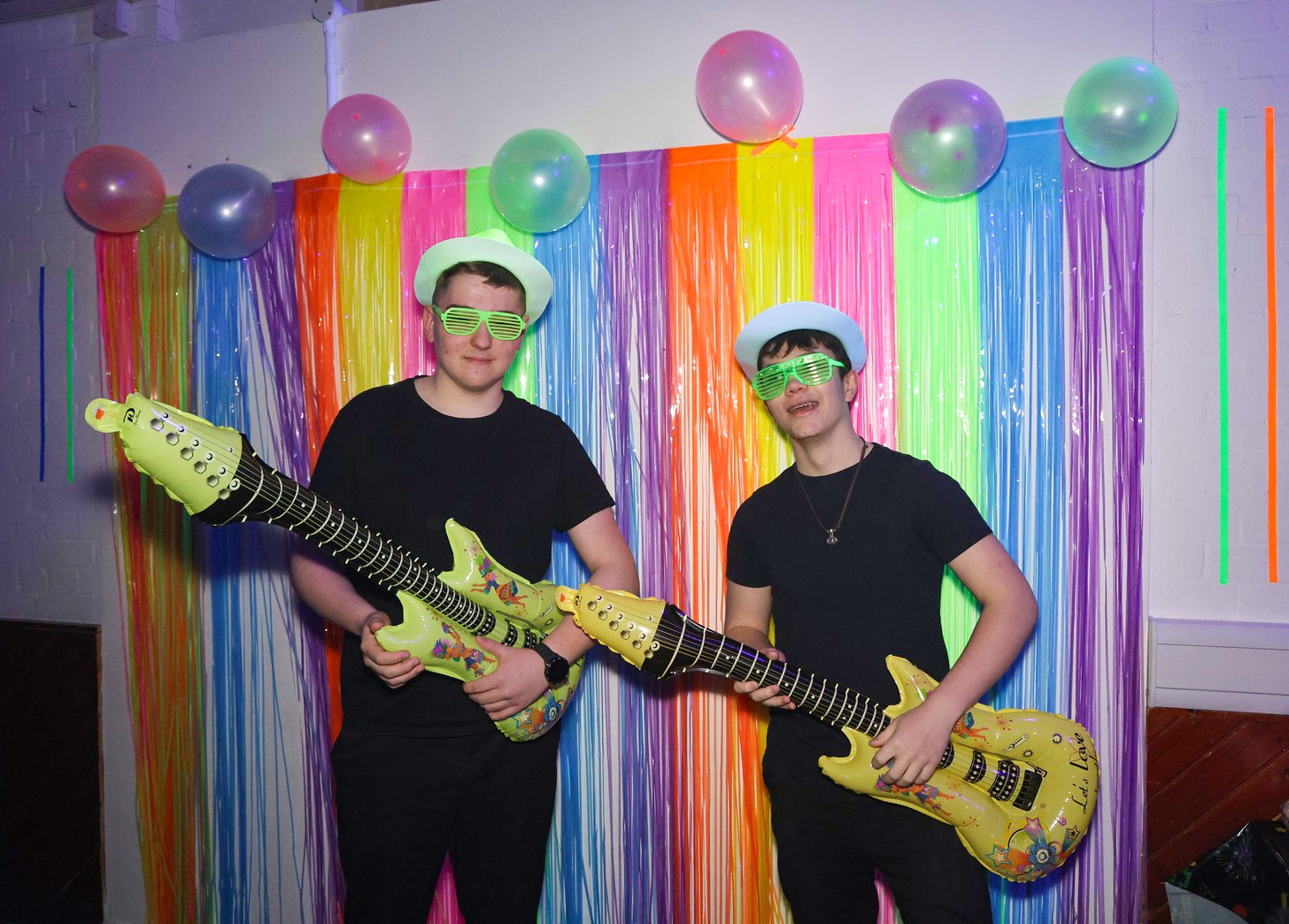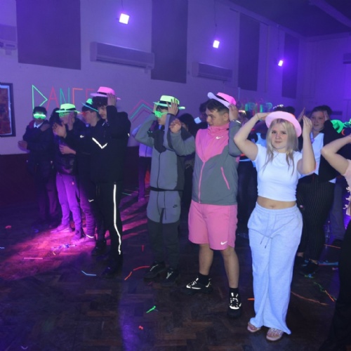 Stepping back in time, the school hall was transformed for a 90s-themed party, complete with disco vibes, UV lighting, and plenty of neon accessories. Students enjoyed light-up glasses, glow sticks, and inflatable props in a dedicated photo area, creating a fun and vibrant atmosphere throughout the afternoon.