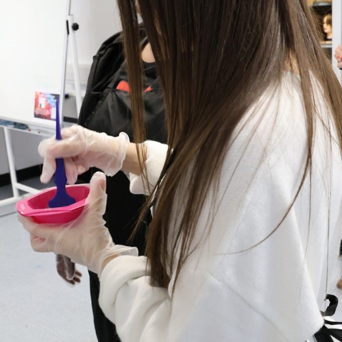 Building on an initial theory session earlier this term, Paula’s second visit allowed students to put their knowledge into practice through a range of thrilling colour experiments. These activities not only deepened their understanding of colour theory, but also boosted their confidence in selecting and applying colours — an essential skill for real-world hair colour services.
