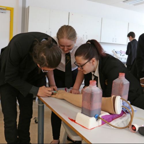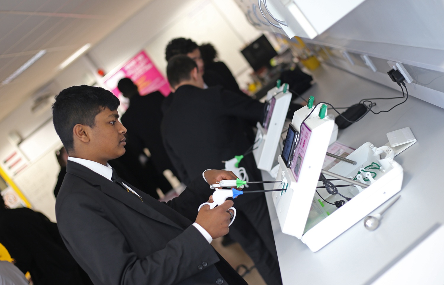 Upper Academy students took part in various hands-on activities including recording using ultrasound equipment and experiencing what it would be like to perform keyhole surgery using a training device used by real surgeons.