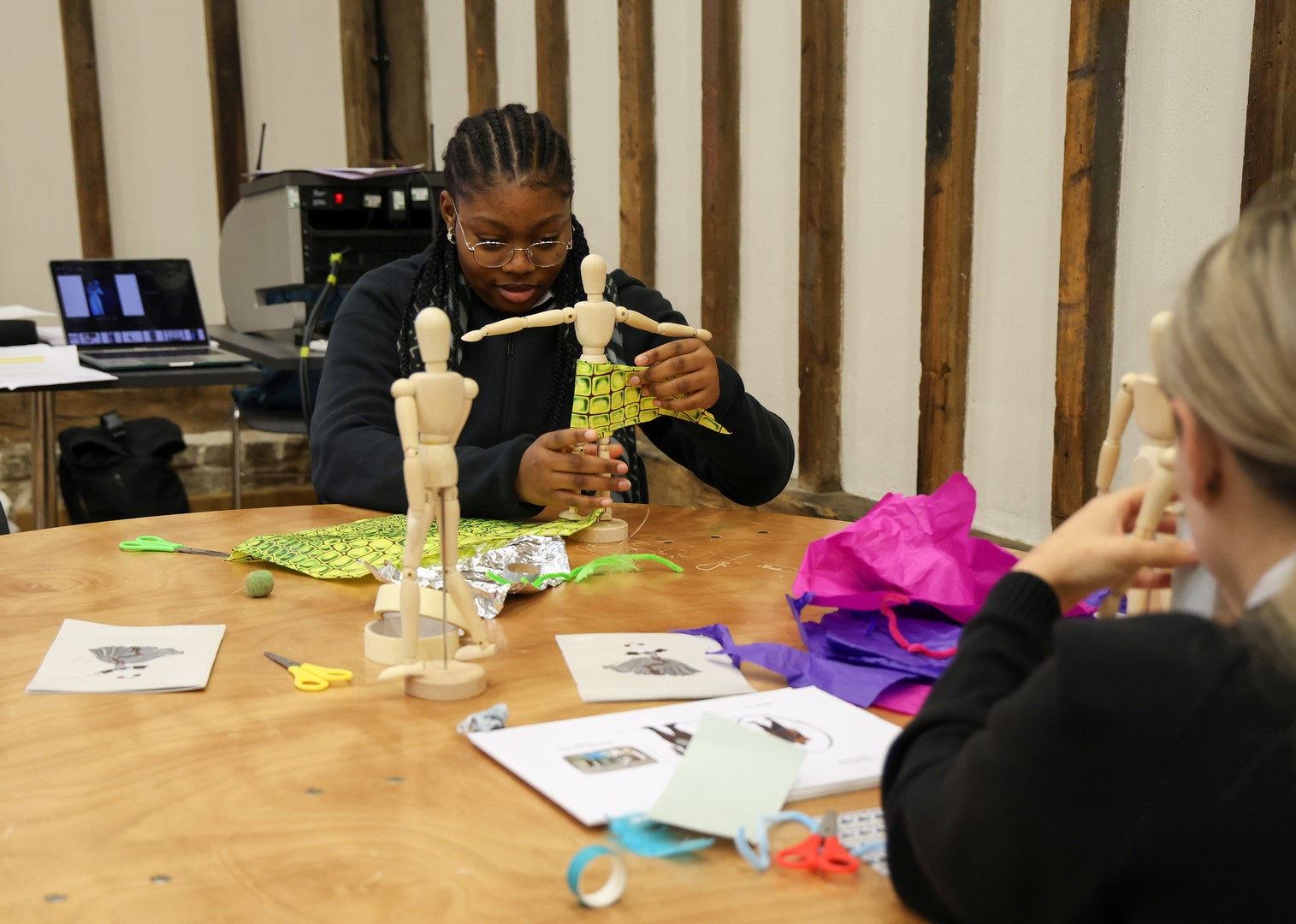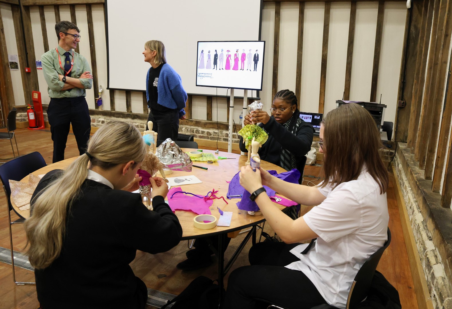The day began with an exciting costume design workshop, where students explored how costume designers use colour, texture and symbolism to bring characters to life. Looking at productions such as The Importance of Being Earnest and Alice in Wonderland, they discovered how every fabric choice and design detail helps tell a story on stage.